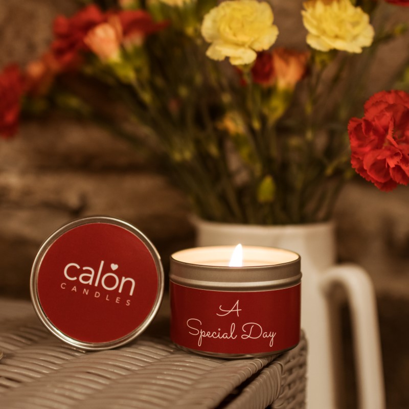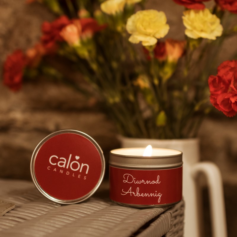 Our A Special Day candle is bilingual with A Special Day on one side and the Welsh, Diwrnod Arbennig, on the other.