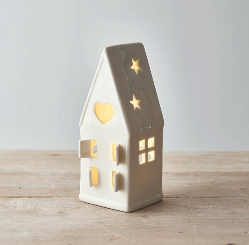 Made from ceramic, this small house has a small cut-out stars to the roof and open windows to complete the look. Also comes with an LED tea light, this small decoration in sure to add a dainty touch and soft glow to your home.