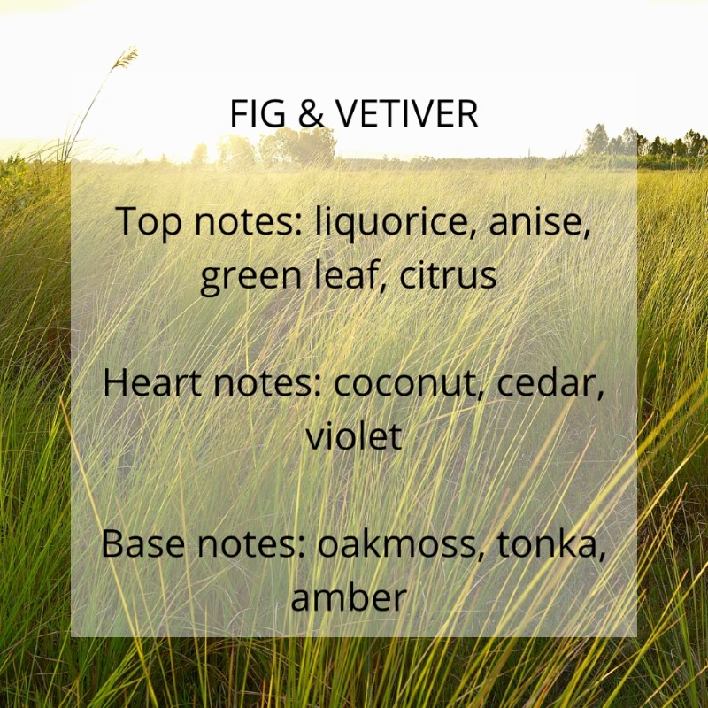 Rich and earthy, the fragrance of our Fig and Vetiver candle opens with liquorice tones of anise blended with the crisp green leafiness of vetiver, perked up with zesty citrus fruits. After coconut sweetens the tones of cedar and violet, they dry to reveal a cushion of oakmoss and tonka warmed by the cosy scent of amber.
