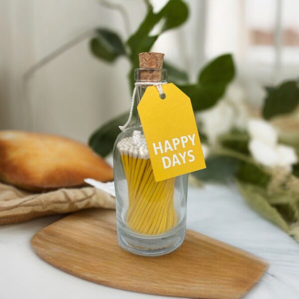 There’s something so satisfying about the sound of a match being struck, and the excitement about the flickering flame of the candle that it will light. Take this experience to the next level with our glass bottle filled with luxury matches.