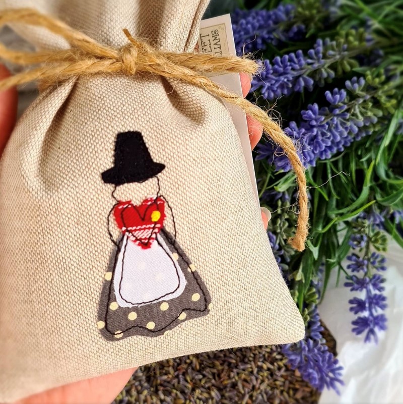 These lovely Welsh lavender bags are made from a lovely cream/beige linen-look fabric. Each lavender bag is filled with award winning lavender and tied with a jute twine bow.
