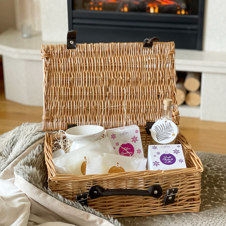 This lovely natural wicker hamper basket comes ready to gift and crammed full of scented goodies.  The hamper includes:
