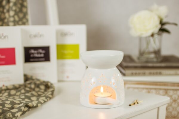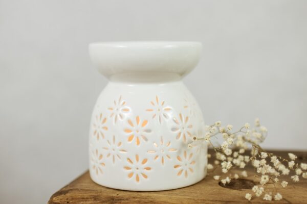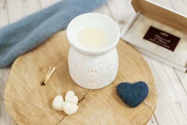 A gorgeous white ceramic tea-light burner in a floral design. (Blodyn means Flower in Welsh). Just look at the cute little tea-light holder! (We love!) Add a pack of our long-lasting melts to begin using it as soon as it arrives.