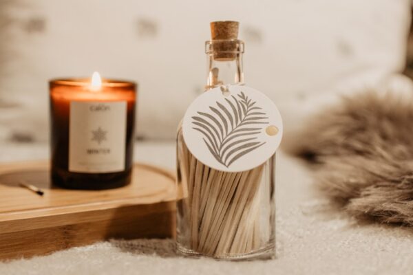 There’s something so satisfying about the sound of a match being struck, and the excitement about the flickering flame of the candle that it will light. Take this experience to the next level with our glass bottle filled with luxury matches.