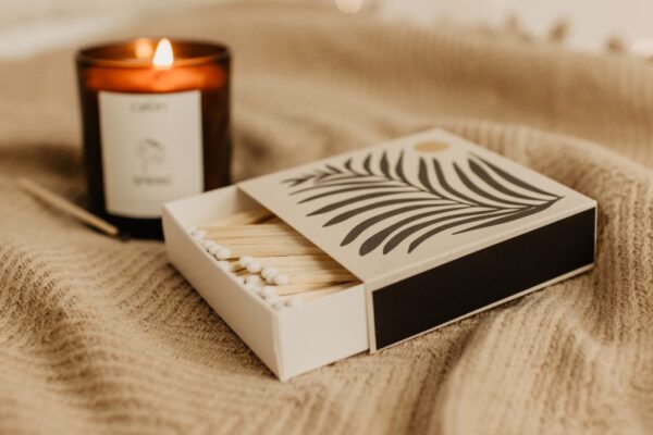 This matchbox features the same Fern design that can be found on the swing tag of our Luxury Glass Bottle Matches. We think they are both rather lovely and look stunning styled with your candles. Or as an alternative, we also have our “If” design matchbox featuring the words of Rudyard Kipling’s famous poem within the lettering.