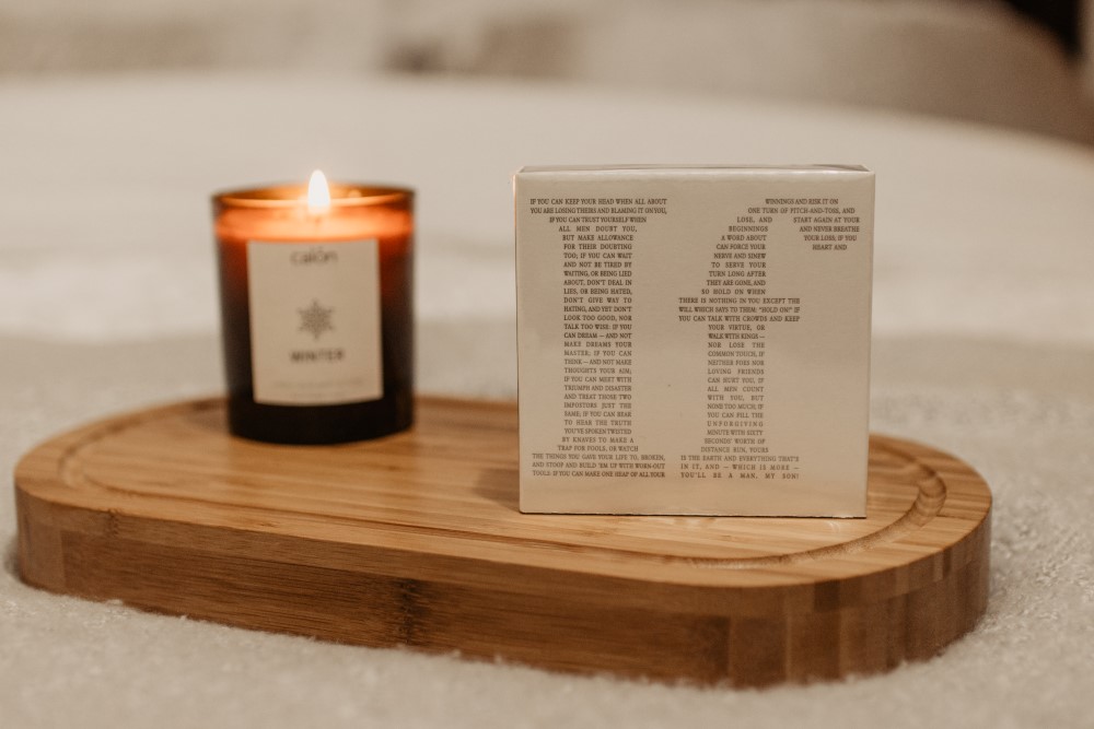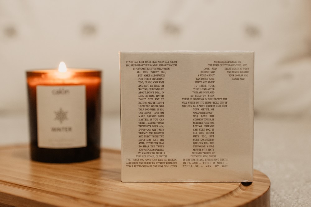 This design features Rudyard Kipling’s “If” with the words of the poem forming the letters; We think they are both rather lovely and look stunning styled with your candles.
