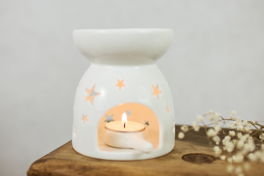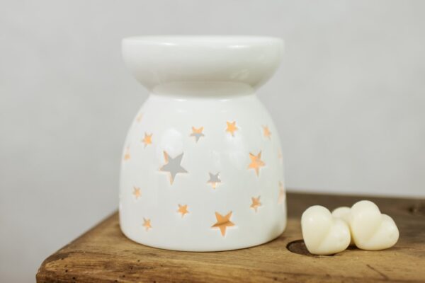 A gorgeous white ceramic tea-light burner with cut-out stars in the design. (Seren means Star in Welsh). Just look at the cute little tea-light holder! ( We love!) Why not add a pack of our long-lasting melts too so you can use it straightaway?