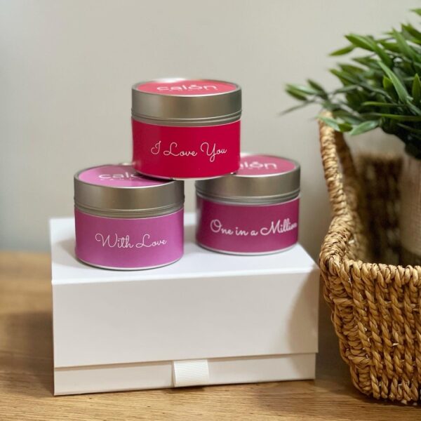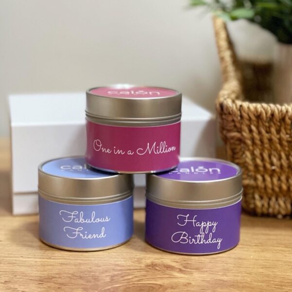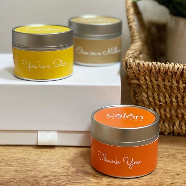 Our outer packaging is all pre-printed as follows, and the candles are made up ready in a selection of our bestselling fragrances, as well as some one-offs and limited edition scents!