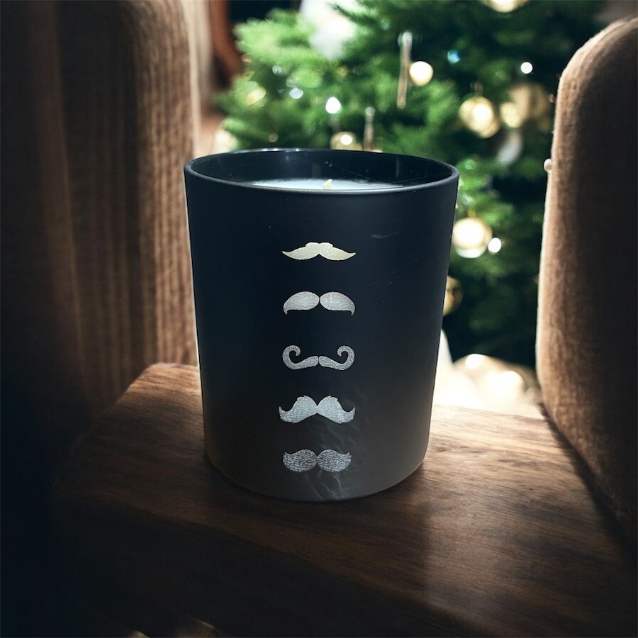 A mandle (aka man-candle) to celebrate the moustached man in your life this Christmas! Hand-poured into a matt black glass, this luxury scented candle is fragranced in Dark Honey & Tobacco and comes in a two-piece rigid gift box complete with ribbon.