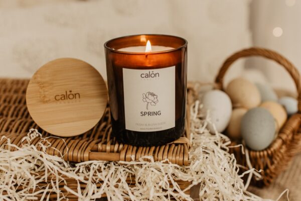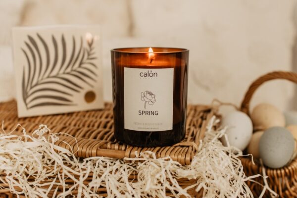 The Peony and Blush Suede Candle is made from eco-friendly, natural vegan rapeseed and coconut wax that is hand poured into our seasonal amber candle glass jar. The 220g candle wick is made from either cotton or linen, offering a clean burn full of natural fragrance.