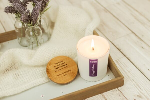 Our personalised candles are a lovely way to send hugs long distance, when you can’t be there for the real thing. The recipient of your thoughtful gift will recognise your heartfelt message as engraved on the wooden lid each time they go to light the personalised candle, and feel the warm embrace of your love as their favourite scent fills their room.