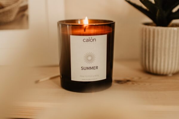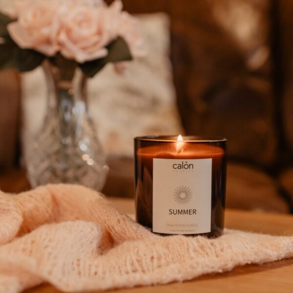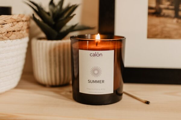 This Pink Pepper and Rose seasonal summer candle is an exclusive option as part of our Summer seasonal range, housed in an amber glass jar. If you would like to add a bamboo lid they are available here – great for keeping your candle free from dust when not in use.