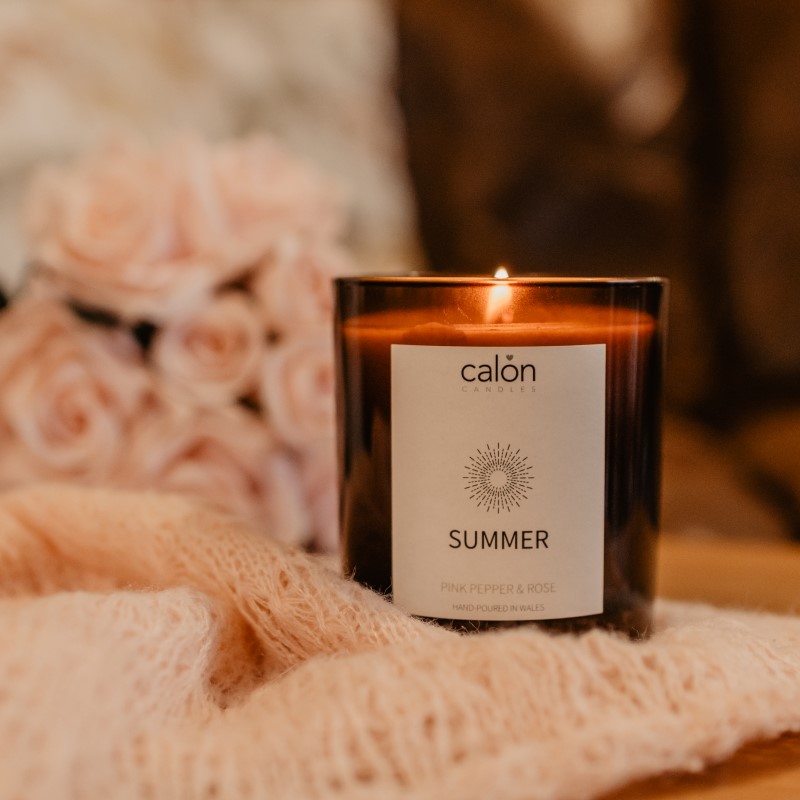 The seasonal summer candle offers a lovely warm glow as the cotton or linen wick burns, bouncing merrily off the amber glass jar and filling your space with the lush fragrance for over 45 hours of burn time. The coconut and rapeseed waxes are blended with the fragrance oils and hand-poured in our studio in Carmarthenshire, where we make all of our Welsh candles.