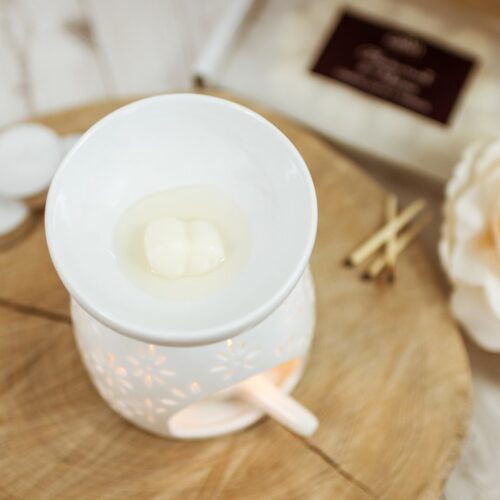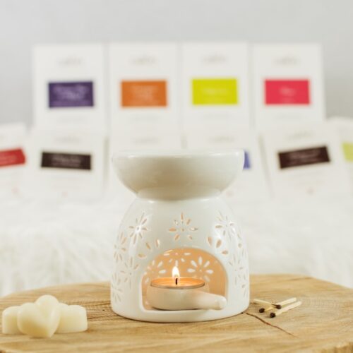 The long lasting wax melts are easy to use – simply pop one or two into a ceramic tea light burner or electric melt warmer. For safety, note that the warmers will get hot when lit, and that we recommend only using 4-hour tea lights with the mini wax melts. Once the fragrance is spent, allow the wax to cool, then discard and wipe down your melt warmer with a piece of kitchen roll. Do NOT wash melted wax down the drain and NEVER leave a burning candle or electric wax melt burner unattended.